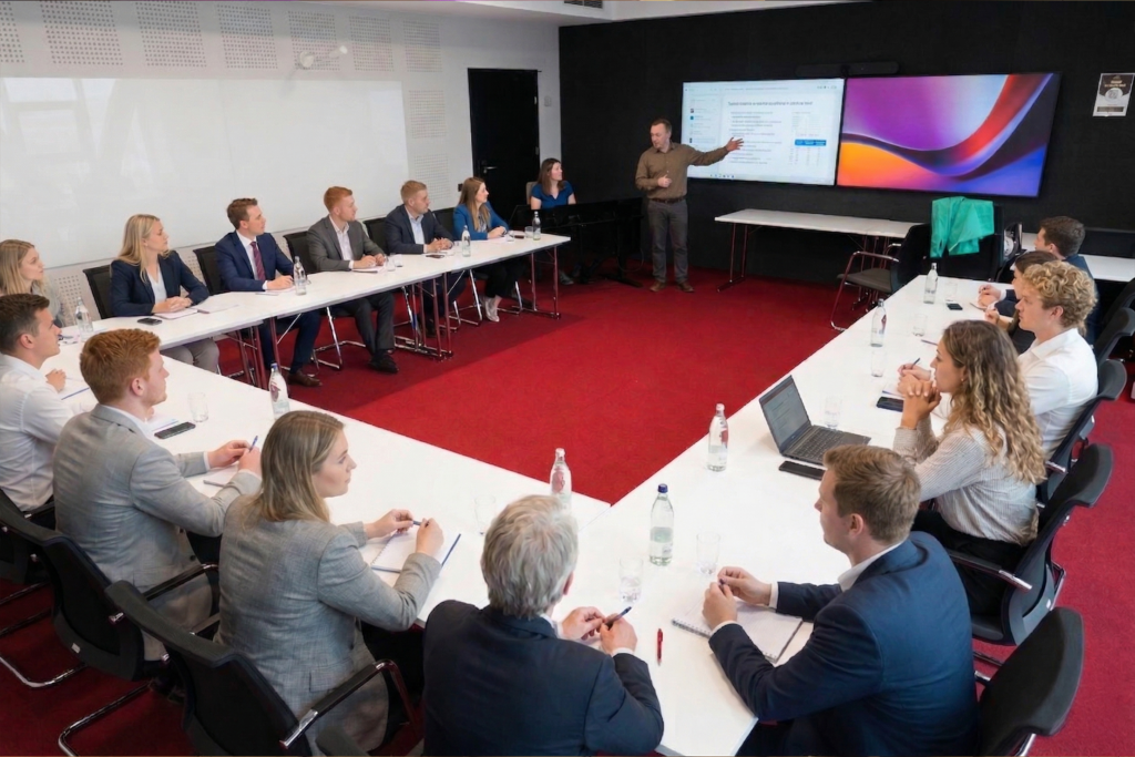 Dzięki temu nawet bardziej rozbudowane materiały wizualne pozostają czytelne dla wszystkich uczestników wydarzenia.