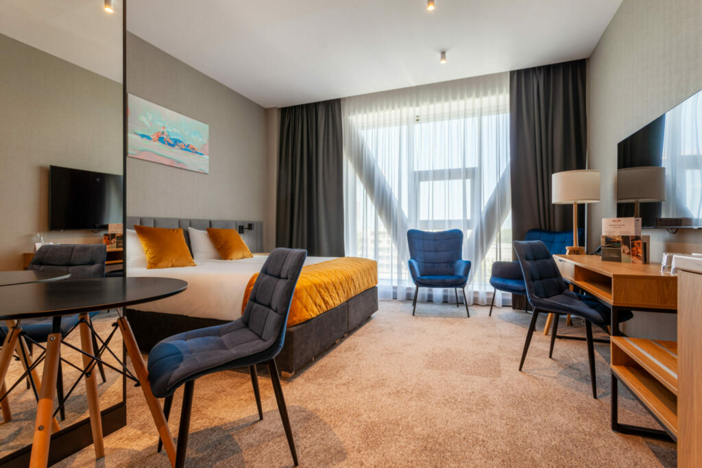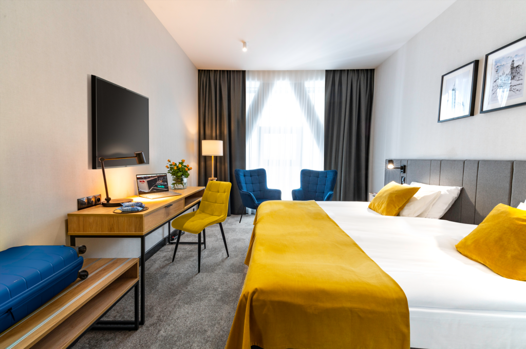 Komfortowa i funkcjonalna przestrzeń dla gości przyjeżdżających na szkolenia, konferencje lub krótsze pobyty biznesowe.