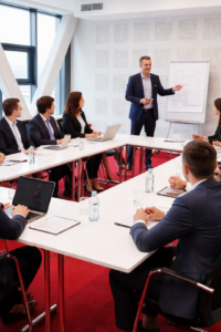 Dobre nagłośnienie to klucz do komfortu uczestników konferencji i szkoleń. Nasze sale zostały wyposażone w systemy audio dopasowane do wielkości pomieszczenia, zapewniające równomierne rozprowadzenie dźwięku.